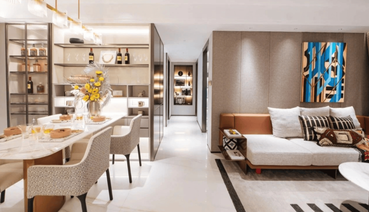 新世界耀胜尊府与 K11 Select 租售中心已喜迁新址,落户于耀胜新世界开展中心 18 层,在这,人伫立于窗前,极目远眺,是琶洲、珠江新城、金融城的富贵盛景;举目近观,左揽长隆的欢喜气氛,右拥万博的商业生机。这般将城市富贵与天然愉悦、商业生机交融的寓居体会,让人满心愉悦。