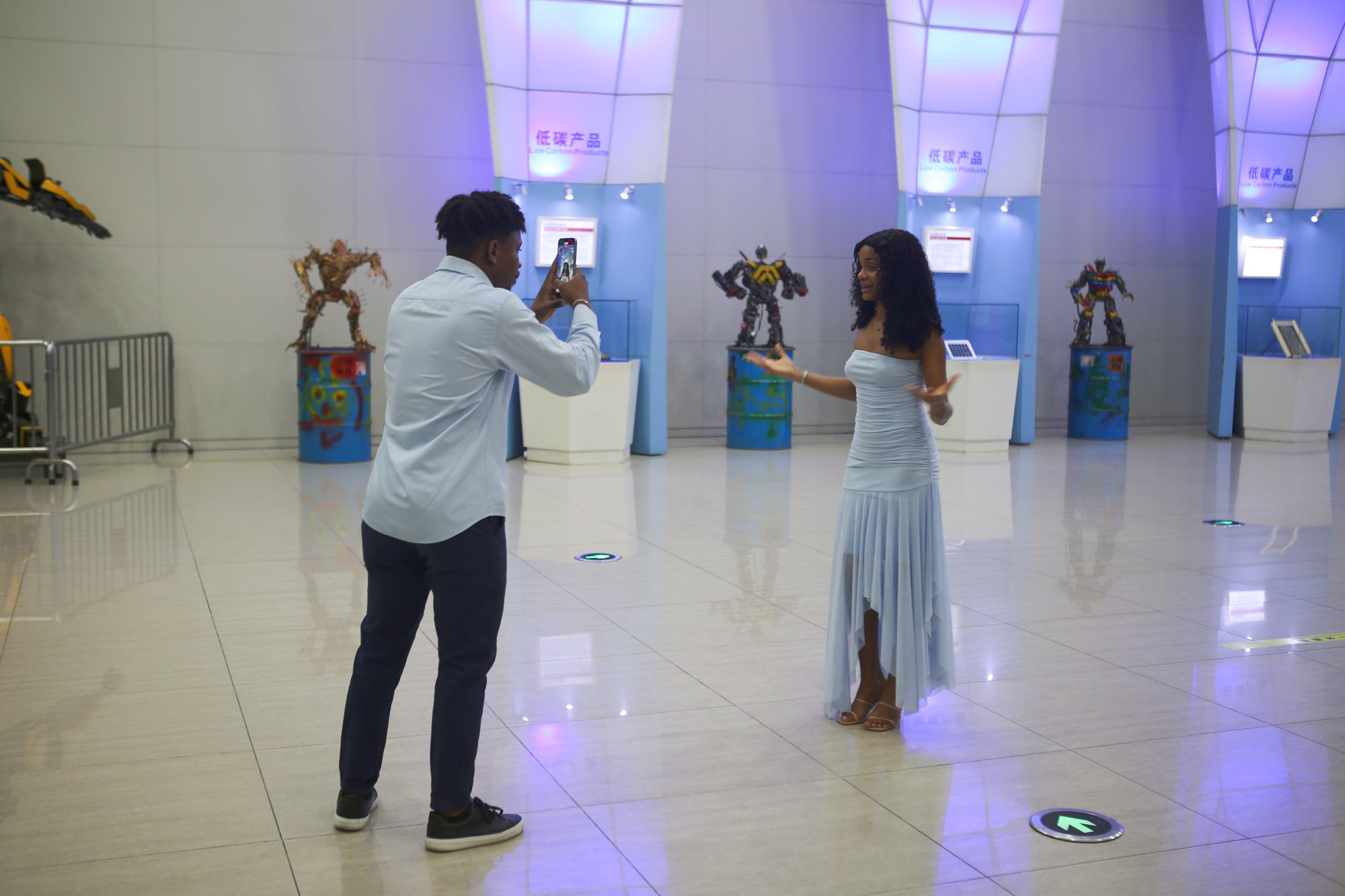 最让Sara一行惊叹的是“全球变暖”展厅沉溺式体会。一行人乘坐竹筏体会传神的全球变暖气候模仿场景,感触北极冰川崩裂的轰响、亚马逊雨林的采伐、极点气候暴虐。 “在安哥拉,咱们也在尽力维护森林,但这样直观的科技表达仍是第一次见。”Sara团队的摄影师拍照之余慨叹,“要把这些‘会说话的我国故事’拍给非洲朋友看。”